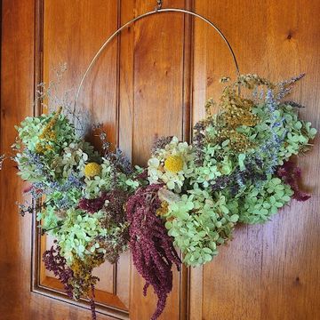 Enjoy this wreath for years to come with dried florals! Perfect for fall, or for a touch of nature any time of year! Ribbon additions available at additional $2.