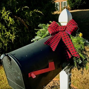 Add a little holiday flair with this winter greenery swag and ribbon for your mailbox! Makes an excellent corporate marketing gift.