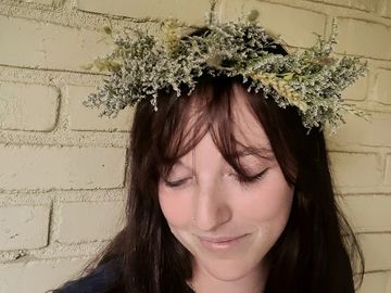 Price varies depending on crown size and ingredients. Dried flowers with adjustable ribbon tie. One size fits all.
